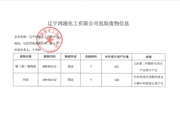 鴻港化工危險(xiǎn)廢物信息